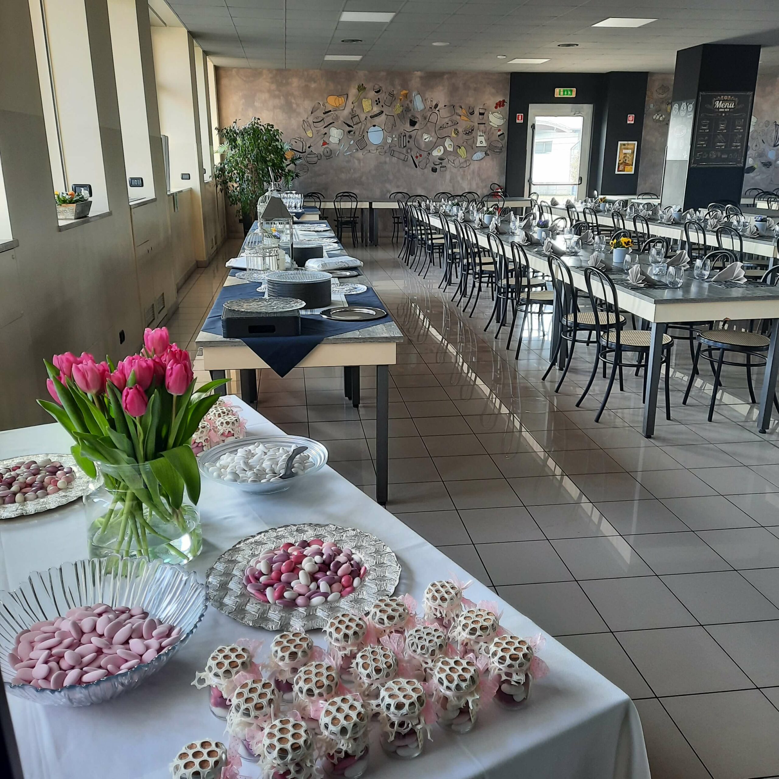 Inoltre, diamo la possibilità di affittare la location organizzando il catering all’interno del nostro locale. Dai un’occhiata alle foto per vedere come abbiamo lavorato e allestito la nostra location per un battesimo.